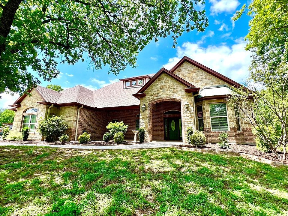 Beautiful custom home on one acre near Azle! As soon as you walk into this home, your view will be pulled to the gorgeous wall of windows showcasing the serene backyard setting. Not only does this home sit on an acre with over 100 trees (yes, you read that right!), but it also backs up to a green belt so it feels even bigger! The first floor features two-tier crown molding, stone fireplace, so many windows to let in all of the natural light, 3 bedrooms, three of the four bathrooms, beautiful kitchen with double ovens and induction cooktop, and so much more! There are three true bedrooms with closets downstairs, as well as a flex room which can be used as you desire. Upstairs is another full bath, large room, closet, & balcony access. The home has a dual-zoned AC system, tinted west windows, as well as spray foam insulation to help keep electric bills low. Private well, no HOA, and NO CITY TAXES! Don't miss your chance to own this custom home with plenty of space on a park-like lot!