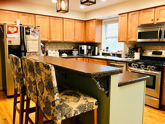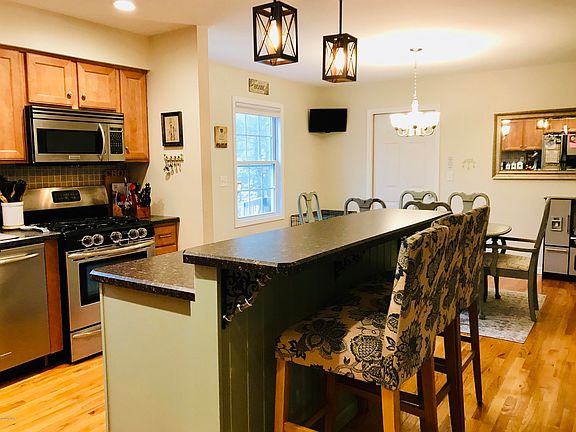 Lovely country home with a covered front porch on a quiet street. This immaculate home features hardwood floors through out. Kitchen has stainless steel appliances, large island with seating and walk in pantry. Dining area with entrance to spacious rear deck overlooking a nice wooded back yard. Half bath on main level, nice size living room with pellet stove. 3 bedrooms on the second floor. Master bedroom with master suite. Laundry on 2nd floor and an additional full bath. Unfinished basement for room to grow with door to the back yard. Energy efficient furnace and Central Air. Don't forget the oversized 2 car garage and attic storage! All this and the lake is just a short walk away.