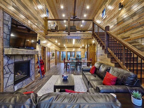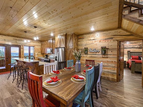 Welcome to "Sweet Sunrise", a striking 2021-built cabin that perfectly blends rustic charm with modern comfort. Nestled in the serene Sunrise Ridge community offering exceptional views and paved roads, this 2-bedroom plus bunk room, 3-bath retreat offers an exceptional opportunity for those seeking a private, tranquil mountain getaway in Broken Bow, Oklahoma. The cabin’s distinctive barn-style design features cypress siding, soaring ceilings, and warm, rustic finishes that create an inviting atmosphere from the moment you enter. Exceptional 10/10 ratings from 133 reviews.