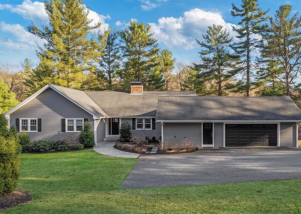 Single floor living at its best! This 4BR 2.5BA home is set on 2+ acres, with a walk-out lower level and direct access to the 491-acre Rocky Woods Reservation! Beautiful kitchen with wood cabinetry, granite counters and stainless appliances; fireplaced family room, formal dining room, fireplaced living room, primary bedroom w/attached bath, 3 additional bedrooms, a full bath and powder room complete the first floor. The walk out lower level features a 49X13 entertainment space w/sliders, separate 11 x 10 office and storage. Attached 2-car garage. 2018 roof & siding, 2020 furnace & oil tank, wired for generator. Seller looking for June 30 or later move out/closing. The charming town of Dover is 15 miles SW of Boston, enjoys a low tax rate & top school system.