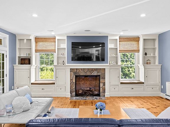 Exquisitely rebuilt & expanded 5,500 sf Gambrel is positioned across from Cohasset's top-rated middle/high schools. This refined residence offers the perfect blend of comfort & sophistication for a growing family that loves to entertain in style. A sun-filled gourmet kitchen with dual islands, high-end appliances, walk in pantry & adjacent dining area flows into the living room with fireplace & French doors to a covered porch & gazebo with outdoor fireplace & hot tub. Elegant dining room with fireplace & built-ins, sunroom & first-floor office. Upstairs, the spacious primary suite includes a private deck, fireplace & marble bath with spa-like amenities. Three additional bedrooms, two share a private den/playroom. Stunning vaulted-ceiling library is the perfect reading nook. A separate fifth bedroom suite with full bath & large game room is ideal for in-laws or au pair. Large, level backyard, oversized two-car garage with attached garden shed & lower level home gym complete this home.