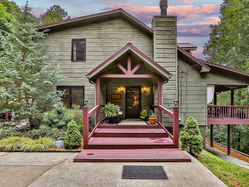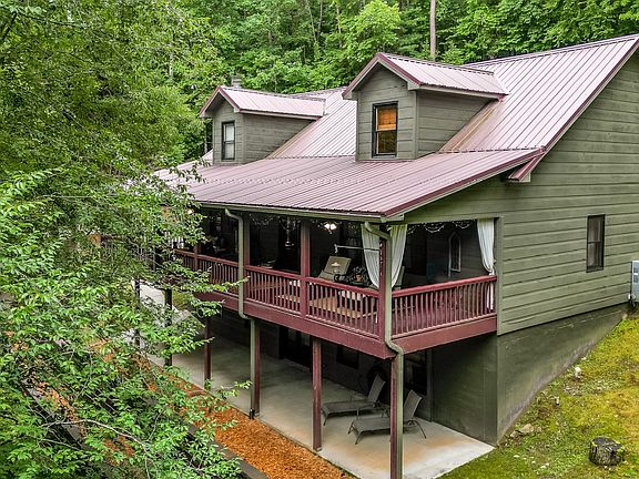 The striking Howlin' Wolf Lodge is like living in a luxurious treehouse while still close to everything. The Coosawattee River is steps away for kayaking, tubing or fishing. The Creekside walking path at bottom of the driveway takes you to a community lake. Minutes from summer pool, main gate and Ellijay shopping & dining. Private and secluded, The Wolf has 3 levels for entertaining with Master, his & hers closets, laundry on main. Open floor plan w/ 22 ft ceiling in LR. There's 3.5 baths and 4+ bedrooms if you're thinking rental investment. Enjoy downstairs media room next to a hookup ready bar/kitchen area. There's also 2 bedrooms (office), full bath, workshop, lg storage room & covered patio. Upstairs is lg bedroom w/private sitting area, en suite bath, soaking tub and huge loft. Heated pool, fitness ctr + more in CRRA. Or nap on the full-length lanai with soothing creek below & grill steaks out back at sunset. The Howlin' Wolf is calling you today!