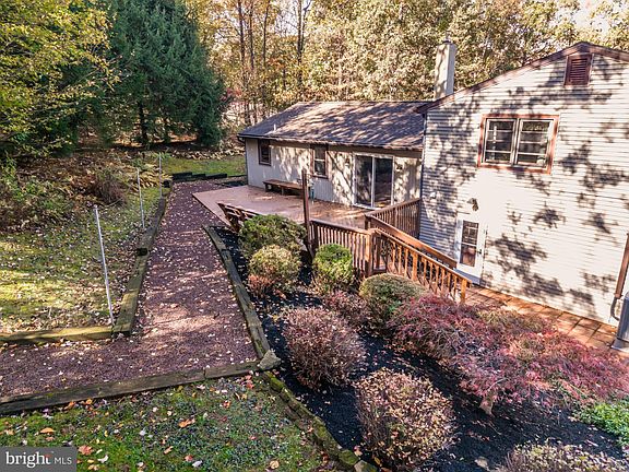 Welcoming Split-Level Home in Quaker Hill! This well maintained 3-bedroom, 2-bath home is in the desirable Twin Valley School District and offers a blend of comfortable living spaces, modern updates, and impressive outdoor amenities. Step inside to an open main floor that seamlessly connects the kitchen, dining, and living areas, perfect for gatherings and everyday living. The dining room and kitchen feature hardwood flooring throughout, while the kitchen boasts classic oak cabinetry, granite counters, a tile backsplash, a SS undermount sink and an island w/ seating and extra workspace. Recent upgrades include recessed lighting, a new sliding door that welcomes natural light, and a new pellet stove with a brick hearth, creating a cozy atmosphere for relaxing evenings. Upstairs, the recently installed hardwood flooring extends through the hallway and bedrooms, providing warmth and charm. The renovated hall bathroom offers contemporary finishes, while the spacious primary bedroom is complemented by an en-suite bath featuring a large walk-in tiled shower. Each bedroom is equipped with ceiling fans and ample closet space to accommodate all your storage needs. The lower level includes a convenient laundry/mud room with patio access and extra closet space for storage. Go down a few more steps and you will enjoy the finished family room, complete with tiled flooring, classic wainscoting and an additional brick hearth w/ pellet stove. There is also an unfinished utility area for additional storage and an oversized one-car garage w/ extra space for a workshop or storage space for hobbies and projects. Once outside, you may relax or entertain on the large private rear deck with built-in seating or gather around the paver patio for outdoor dining. There are two spacious utility sheds which provide ample room for lawn equipment and seasonal items and a paved driveway with an extra parking area for additional vehicles. This move-in ready home combines comfort, style, and practicality. With its open main floor, modern kitchen, renovated bathrooms, finished family room, generous storage, and great location. Don't miss your chance to see this exceptional property!
