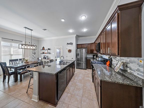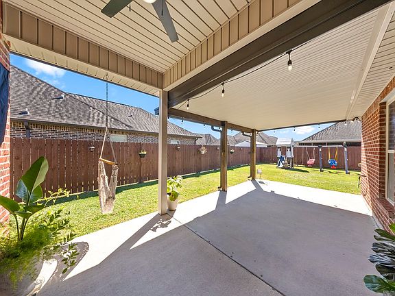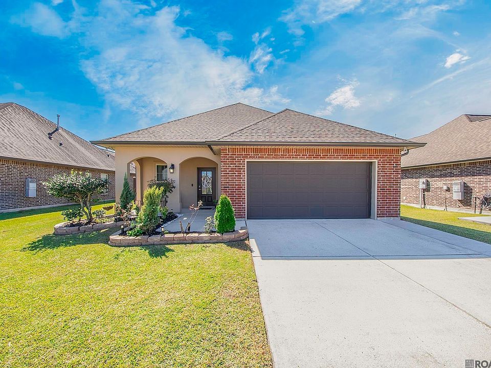 Highland Oaks • 0.7 mi to PJ’s Coffee • Built 2018 • No carpet • Covered patio & fenced yard • 0.5 mi to Hwy 90 Built in 2018, this energy-efficient home in Highland Oaks offers a comfortable, open layout designed for everyday living. The kitchen is the heart of the home, featuring a large island with bar seating, a gas range, and full slab granite countertops that extend to both baths and the corner fireplace surround. Birch cabinetry and tile flooring in the kitchen and wet areas pair beautifully with wood floors in the living room, creating a cohesive and durable design. The primary suite includes a spacious walk-in closet, double vanity, relaxing garden tub, and separate shower. No carpet and full gutters. Enjoy outdoor living on the 24x11 covered patio overlooking a fully fenced backyard—The 11 × 17 storage shed remains, offering excellent space for tools or hobbies. Additional energy-saving touches include radiant barrier decking in the attic. Conveniently located just 0.5 mile from Hwy 90, this home offers easy access to local dining, shopping, and services including Rouses Market (0.8 mi), Walgreens (0.6 mi), and Spahr’s Seafood (0.9 mi). A thoughtful blend of comfort, efficiency, and location—ready to make your move effortless.