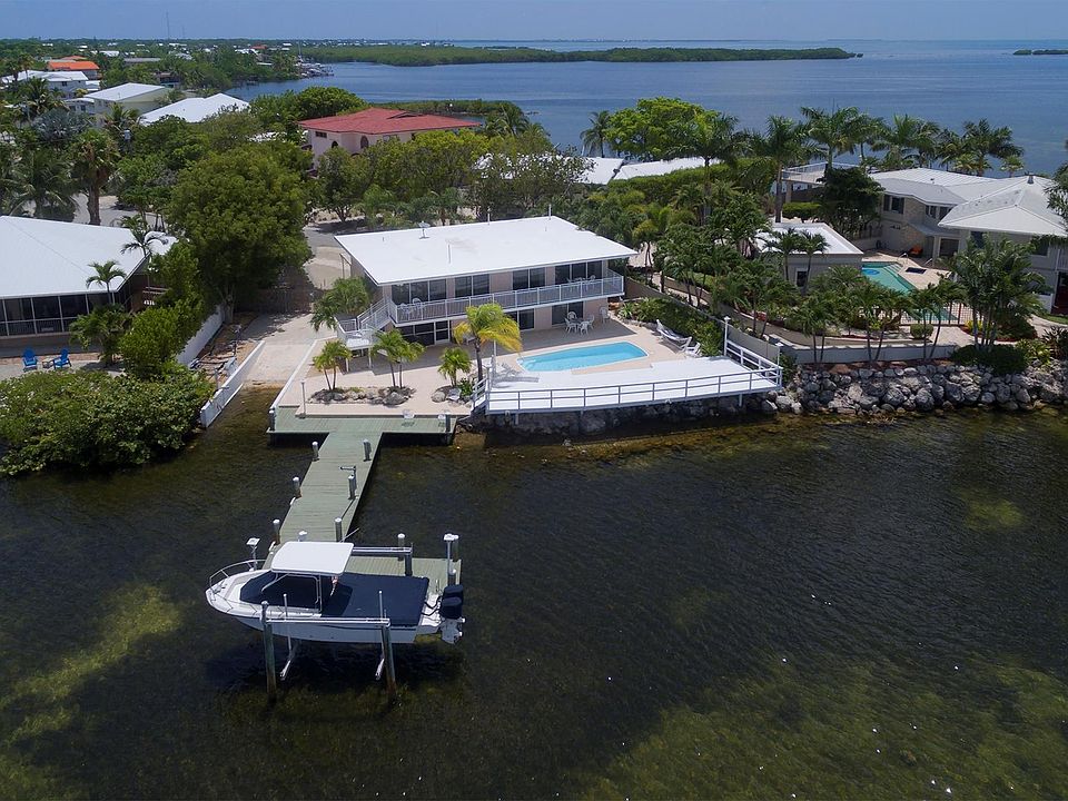 This well maintained all concrete home on the bay offers 3 bedrooms, 2 baths upstairs with an interior staircase to the rec room and den with full bath downstairs. The spacious living room overlooks the heated pool and Florida Bay! Magnificent views from just about every room in the house! The spacious lot with 110' of water frontage offers a boat ramp, 10,000 lb boat lift plus the 2 garages