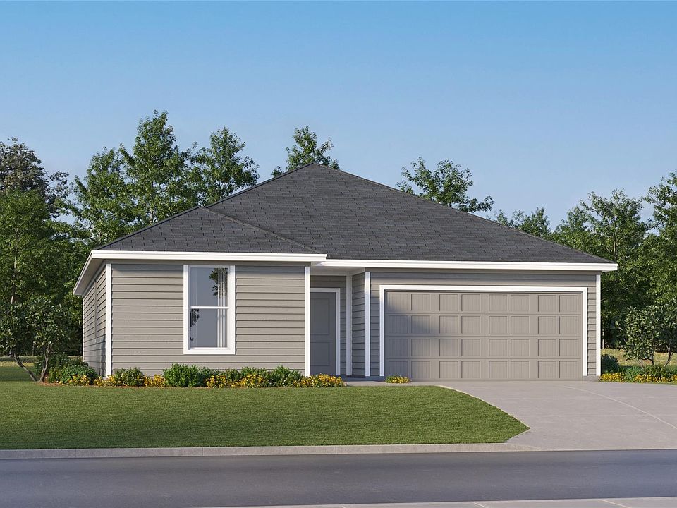The Frey - This single-story home shares an open layout between the kitchen, nook and family room for easy entertaining, along with access to the covered patio for year-round outdoor lounging. A luxe owner's suite is in a rear of the home and comes complete with an en-suite bathroom and walk-in closet. There are two secondary bedrooms at the front of the home, ideal for household members and overnight guests. Photos are for illustrative purposes only. Estimated Completion February 2026.