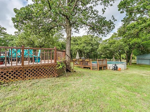 Over an Acre with mature trees, Pond, Two Wood Decks and Large Workshop! All within 25 minutes of Ft. Worth. Recent updates include New Windows, Storm Door, A-C Unit, Granite Kitchen Counters, Granite Tile Floors in Entry & Bathrooms, Wood Grain Ceramic Tile in Living Room, New Microwave & Dishwasher, New Garage Door, Nice Landscaping. Above ground Pool & Wood Swing Set are included or can be removed. The refrigerator is included. Large attic space. Loft space in Workshop. City Water & Septic System. Well-maintained and Clean!