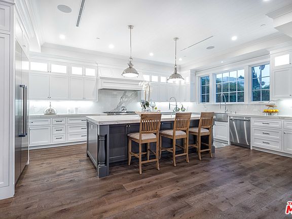 Incredible Cape Cod set behind gates w/ an open flr plan perfect for today's lifestyle. One of the best new const. estates on the market today. Built above & beyond the standard level of a spec home w/ amazing detail/quality/craftsmanship. Fully integrated Crestron including 2 ipad docks, smart thermostat, security cameras, surround sound & 1-touch lighting. Features include liv rm w/ frplc, din rm w/ glass wine rm & large open kitc/fam rm w/ center-island, frplc & built-ins which open to the beautiful backyard. 1 bdrm suite is offered on the 1st flr as well as a powder & mud rms. 2nd flr includes a stunning master suite w/ vaulted ceiling, frplc, bar, terrace, beautifully finished dual dressing rooms & elegant bath. 2 addtl. bdrm suites + a bonus area w/ terrace upstairs. The stylish grounds offer the perfect setting for relaxing by the pool or host al fresco dinner parties on the covered veranda. Within walking distance to 3rd St. restaurants/coffee/shopping/The Grove.