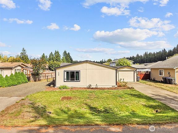 Beautifully Updated 4-Bedroom Home with Detached Garage & Spacious Yard This thoughtfully updated manufactured home offers 4 bedrooms, 2 full bathrooms, and a detached garage, situated on a generously sized, fully fenced lot. The interior features a bright and open floor plan with modern finishes, brand new carpet, and a well-appointed kitchen. The primary suite includes a private bath and ample closet space. Outside, enjoy a large yard ideal for outdoor activities, gardening, or entertaining. Conveniently located within walking distance to Shelton High School and just minutes from shopping, dining, and access to Hwy 101. A move-in ready property that combines comfort, space, and an excellent location.