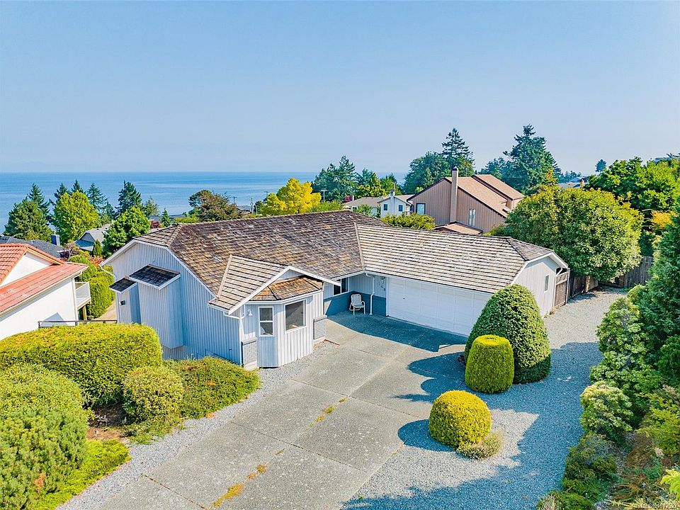 This level entry home features an outstanding ocean view and is set on a quiet cul-de-sac in a desirable location in North Nanaimo. With approximately 3100sf, including 1659 sf on the main level, the expansive living and dining rooms each have beautiful views of the Salish Sound and Coastal Mountains. The living room also features a gas fireplace and picture windows and vaulted ceilings to add natural light. The primary bedroom features a walk-in closet and ensuite; another bedroom and den complete this level. The lower-level features enormous storage space, 3rd bedroom, family room with fireplace, and flex/mud room with easy access to the rear yard, plus a separate side door if adding a basement suite is an option. A deep driveway leads to a double garage, ideal for recreational vehicles. A gently sloped yard is also easily accessible. The 12,400sf lot is also extra deep and private with mature gardens. You have excellent neighbours, including a mix of young families to retirees.