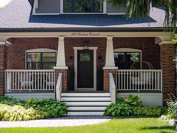 Hidden behind mature trees & backing onto a ravine in the heart of Cliffcrest by the Scarborough Bluffs, this renovated 1920s Craftsman Revival is a storybook home blending timeless character with modern updates. Set on a rare 50 x 250-ft lot, it offers natural privacy with a park-like setting, the perfect backdrop for family life. Inside, 10-ft ceilings & large windows fill the home with natural light. The main level features connected living & dining spaces, custom millwork, a powder room, & a farmhouse-inspired kitchen with a centre island, double sink, & high-end appliances, all overlooking the backyard, & a mudroom keeps daily life organized. Original character shines throughout in the trim, transoms, & vintage doors, while thoughtful updates add easy comfort. Upstairs, 3 bright bedrooms include a sunlit primary, 2 full bathrooms, generous closets, & a secret fort for young imaginations. Below, the finished basement extends living space with a 4th bedroom & ensuite, laundry, & a recreation area that feels bright & versatile, perfect for guests, play, or movie nights. Outside, the backyard stretches deep into a ravine-backed landscape, more private park than yard. With direct trail access, its a natural playground where kids explore, wildlife wanders & evenings feel like weekends at the cottage, yet downtown is just 20 minutes away. Set within a family-friendly community that feels more like a small town than the city, the home is walking distance to the top-rated Chine Drive Public School atop the Bluffs. Neighbours gather on porches, kids bike to parks & splash pads, & every summer the street comes alive with community parties. Parks, trails, tennis courts, & shops are nearby, and with the GO Train just minutes away, the city is always within easy reach. This is the kind of home that rarely comes to market, where architectural integrity, family-friendly design, & natural beauty come together with quiet confidence. Uncomplicated. Elegant. Endlessly livable.