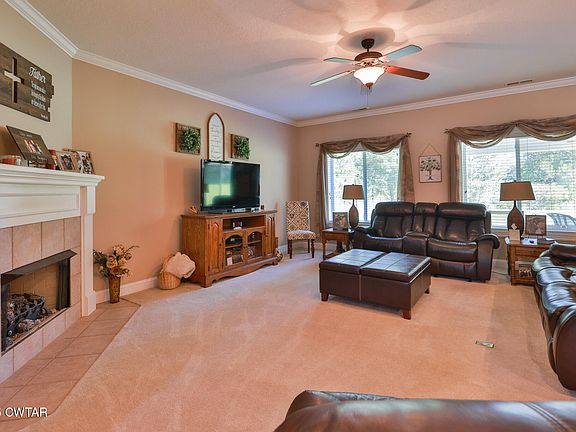 Inviting single-story home with spacious living areas perfect for entertaining. The living room features a cozy fireplace and abundant natural light. Well-appointed kitchen with modern appliances flows into the dining area. Generous master suite includes a luxurious ensuite bath with soaking tub and separate shower. Additional comfortable bedrooms offer versatility. Enjoy the covered back patio overlooking a large, manicured lawn—ideal for relaxing or hosting gatherings.