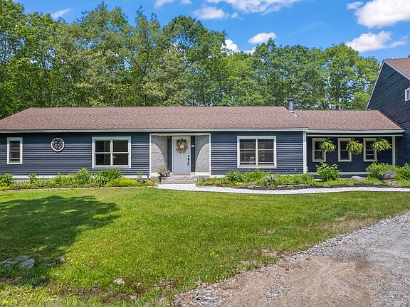Take a look at this beauty! This 2005 Ranch has so much to offer and sits on 5.9 acres. As you enter through the front door, you'll find yourself in a mudroom area that opens up to the inviting living room that features a charming wood-burning fireplace and an updated kitchen with an island and smart fridge. The dining area has sliding doors that lead out to the deck and backyard. Down the distinctive curved hallway, you'll find the general bathroom and three bedrooms, including the master suite, which features a walk-in closet and a full bath.