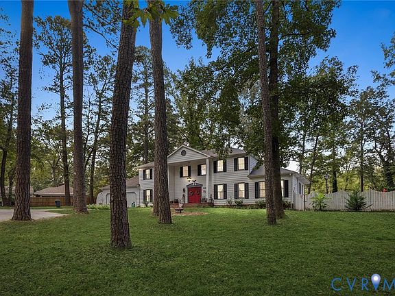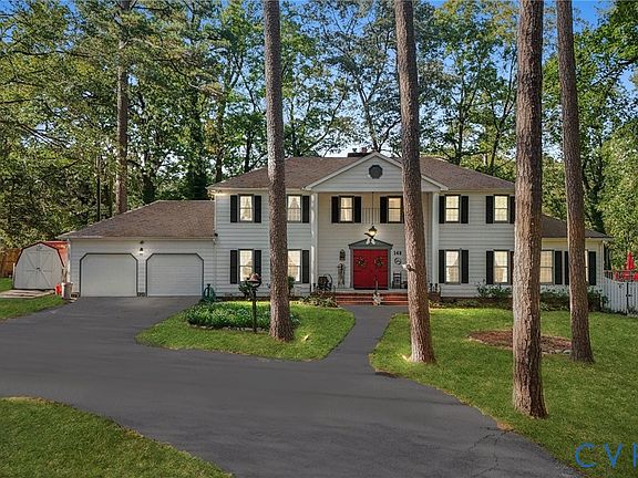 Welcome to this stunning 5 bedroom, 5 bath Colonial-style home nestled in the heart of Colonial Heights with beautiful views of Swift Creek Lake. Situated on a park-like lot with a circular driveway, this property offers timeless charm and modern updates. Step inside the welcoming foyer and you’ll be greeted by gleaming floors and classic details throughout. The inviting living room features a dramatic wall-to-wall brick fireplace, wood beam ceiling, and sliding glass doors that open to a large deck overlooking the picturesque and serene water views. The kitchen is a chef’s delight with its cozy fireplace and beam ceilings. The first floor includes a primary suite and a guest bedroom for convenient main-level living. Upstairs you’ll find three additional bedrooms and a huge bonus room, perfect for a playroom, office, or media space. The finished basement provides even more living space to entertain, relax, or gather with family. Additional highlights include 5 full bathrooms, a 2-car attached garage, and beautiful landscaped grounds designed to feel like your own private retreat. Whether you’re hosting by the pool, enjoying morning coffee on the deck, or cozying up by one of the fireplaces, this home offers comfort, character, and space for all.