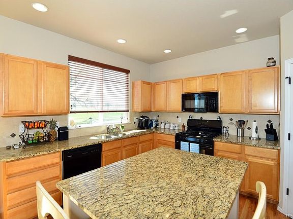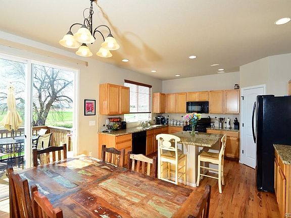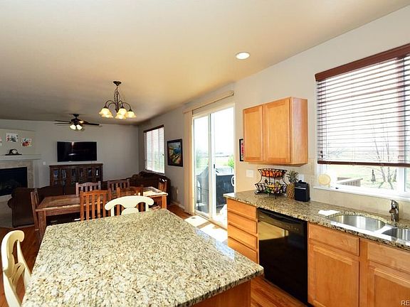 Backs to open farm land with mountain views. 4 bedrooms and laundry on upper floor. Family room with fireplace and mountain views out windows. Well designed kitchen with granite counters, island, gas range and pantry. 5 piece master bath; 3 car tandem garage offers lots of space; loads of potential in unfinished basement - have it your way! Quick and easy access to I-25. Sale is contingent upon Sellers closing on a replacement property.