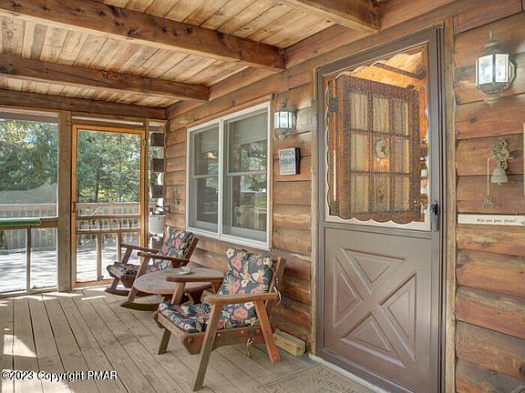 When you get there you'll be surprised to find a peaceful private getaway with a great view. The log cabin is adorable, with screened porch and large deck for outdoor living areas. Cozy interior with stone fireplace, beamed and vaulted ceiling. Sleeping loft upstairs. New roof is being installed. Close to f local attractions and areas of natural beauty.