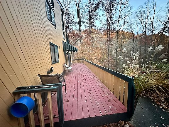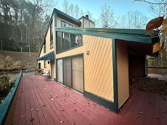 Welcome to your private wooded retreat! Just minutes from downtown, a one-of-a-kind contemporary chalet-style home with durable composition wood siding, green trim accents, and a wrap-around deck overlooking the wooded hillside that perfectly blends warmth, character, and architectural charm.