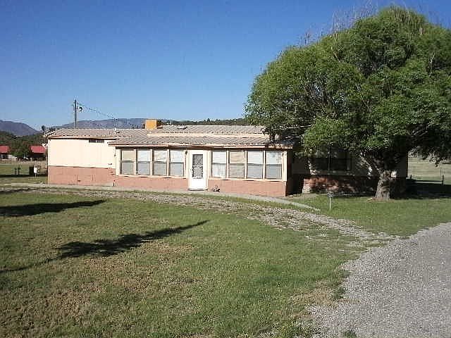 REDUCED PRICE! Enter into a bright & happy large sunroom w/ Earth woodstove. Step into good sized living room w/ pitched ceiling. Split bedroom floor plan. Private covered deck in back w/ built-ins. Nice mountain views. 3 separate storage/shop buildings & dog run. Detached dbl carport enclosed 3 sides w/220 & 110 electricity. Well cared for, a good buy & priced 'as is'. One of the most level lots you're going to find! Fenced Pasture area in back. Next door (L1, B 4, Big Country SD) available for additional $37,000. Must sell Lot 1 & Lot 2 together or sell Lot 2 first. Will not sell Lot 1 first. (Lot 1 approx. 1.89 acres w/utilities installed. Both together would total 3.75+- ac.) Nice trees.
