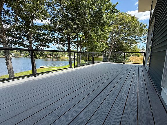 The home showcases maintenance-free siding and flooring throughout, ensuring years of worry-free enjoyment. Climate comfort is provided by efficient heat pumps that deliver both heating and air conditioning. A large glassed-in deck overlooks the sparkling water, providing an ideal space for relaxation and entertaining while taking in the scenic lake views.