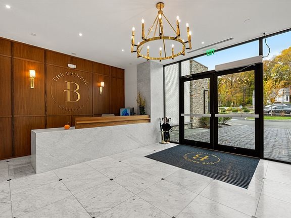 Experience unparalleled luxury living at The Bristol in the heart of Wellesley. 23 unit condo community in concierge building designed for buyers seeking maintenance-free living and every modern convenience. Corner unit boasts 9 ft ceilings and white oak floors. Seating for four at waterfall island. Seamless walnut and glass cabinetry and handmade subway tile backsplash creates a crisp, contemporary aesthetic. Wolff appliance package and Sub Zero completes this designer kitchen perfectly. Generous din area incl built-in banquet storage. LR gas fp offers cozy spot heating instantly. French doors to private deck overlooks town land/trail system. Primary suite is like 5-star boutique hotel. Frameless shower w/bench seating, double vanity w/stone countertop plus water closet and linen storage make this room sing. Bdrm w/fam bath completes the unit's “east wing.” Set-apart den incl barn door to accommodate guest. California Closet systems installed throughout. 8AM to 9PM concierge.