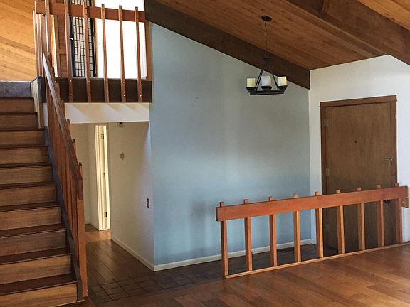 Spacious, bright, open custom house with fully fenced private back yard. Two-story natural rock fireplace. Beamed wooden ceiling. Private inclosed deck off master bedroom. Large kitchen and big windows. Immaculate garage. Redwood and pine threes on the property. Pavers and lawn in the back yard. Neighborhood Description Very respectful people, although no direct neighbors because of the location.