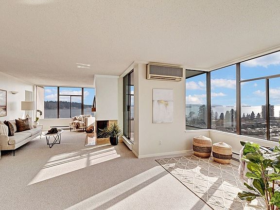 A Rare opportunity to enjoy Penthouse living! The largest suite in this concrete building is gracefully positioned on the SW corner of the 12th floor. From sunrise to sunset, experience unobstructed 300 hundred degree breathtaking views from every room - stretching from Burnaby Mt. to Cypress Mt. Enjoy the elegant living room with a cozy wood burning fireplace. Separate Family room, large gourmet size Kitchen and ocean-view Bedrooms. Such expansive floorplans are a thing of the past. Beautifully manicured grounds surround you on this quiet street with ample parking. Located in the heart of Ambleside near every imaginable store, restaurant, gyms and the beach - all within walking distance. This is the first time on the market in over twenty six years! Your Dream Home Awaits!