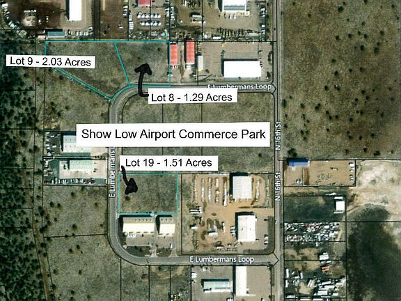 This 2.03 acre parcel (Lot 9) is one of 3 parcels * being offered in the Show Low Airport Commerce Center. Location is very close to the Show Low Regional Airport and the intersection of Hwy's 60/260 & 77. Interstate 40 is approximately 40 miles north on Hwy 77. All utilities are to the Commerce Center lots and the paved roads are maintained by the City of Show Low.* Available Parcel sizes are 1.29, 2.03 & 1.51 Acres with the 1.29 & 2.03 being contiguous and able to be be combined into a 3.32 acre parcel.
