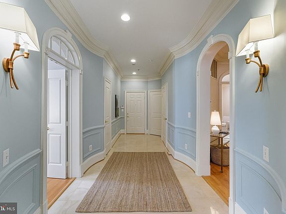 Set within the historic grounds of Evans Farm, this elegant single-level residence is one of only thirteen condominiums in the entire community, offering timeless details and exceptional convenience. With over 2,700 square feet of refined living space, the 2-bedroom plus den, 2.5-bath layout blends gracious proportions with thoughtfully designed finishes. Ten-foot ceilings, hardwood floors, and plantation shutters create a sophisticated backdrop throughout the open floor plan. The chef’s kitchen features a Viking six-burner gas cooktop, Sub-Zero refrigerator, center island, a private terrace, and abundant storage. The living and dining areas include deep crown molding, gas fireplace, and access to a second private terrace. The spacious primary suite features two walk-in closets, a spa-like bath, and a third private terrace. Additional highlights include a den with custom built-ins, a large guest suite with full bath, and a separate office or reading room. The residence includes two underground garage parking spaces. Evans Farm offers gated access, walking paths, beautifully maintained grounds, and preserved landmarks including the original Millhouse and Stonehouse—all just moments to downtown McLean, Tysons, and Silver Line Metro access.