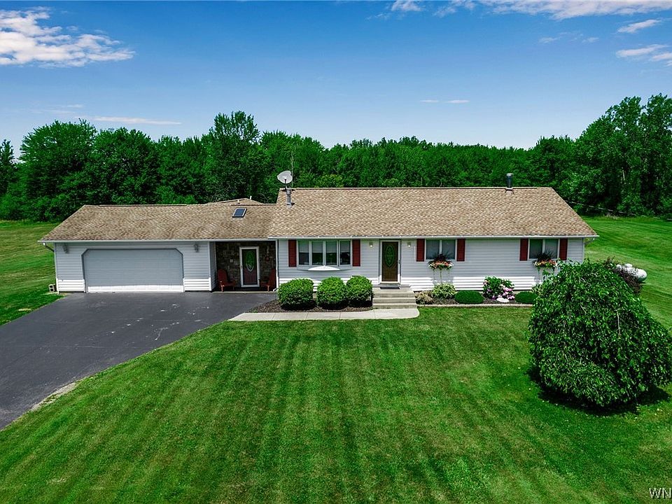 Welcome to this remarkable ranch-style home offering a unique and versatile living arrangement with an in-law set-up, situated on a sprawling 3-acre lot. The main living area boasts a bright and inviting Living Room featuring hard wood floors and cozy fireplace. Off living room you have your large in eat in kitchen with sliding glass door over looking deep 3 acre wooded lot. 3 bedrooms, 2 full bathrooms and laundry area finish up the main living area. Basement has fantastic Recreation room with pool table and projector perfect for entertaining. Bilco basement doors allows for easy access in and out. One of the standout features of this property is the in-law set-up, which includes a separate living area complete with a private entrance, 2 bedrooms, bathroom, and kitchenette. This versatile space is perfect for accommodating extended family, guests, or can be utilized as a home office, studio, or hobby room—the possibilities are endless! This great property is 5 minutes off the thruway, 30 minutes to downtown Buffalo and less than 10 minutes to the Lake. Do not miss out on this wonderful property hitting the market for the first time since it was built!