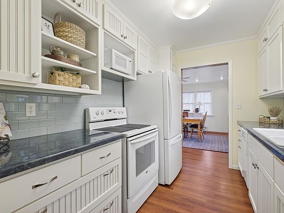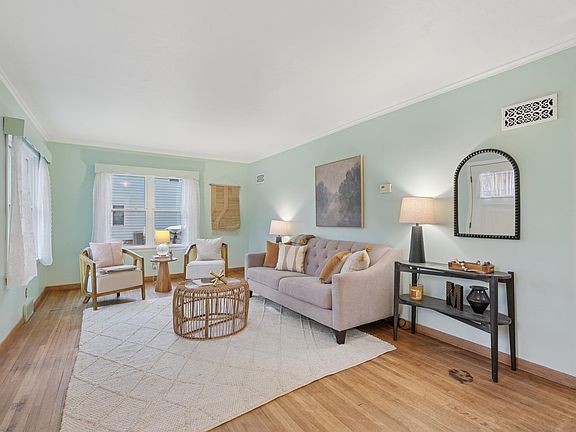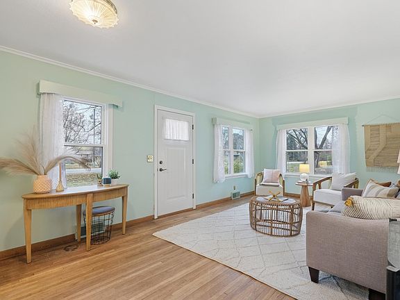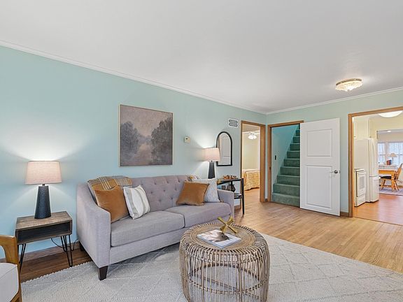 Nearly 1/2 acre lot with mature trees and 4 car garage (1 stall currently used as a workshop). Easy living in this sunny 1 1/2 story home on a great lot with sunroom / dining space and two bedrooms and bathroom on the main level. Updated kitchen with white cabinetry, tile backsplash and nice finishes. Original hardwood floors in the main area of the house and laminate flooring in the sunroom / dining space. Updated main level bathroom. Upper level has a large bedroom space, two closets and built-in drawers and bookshelf. Lower level features a family room with new carpet in 2025 and laundry room plus storage space. Several updates throughout including window and door replacement, as well as electrical panel upgrade.