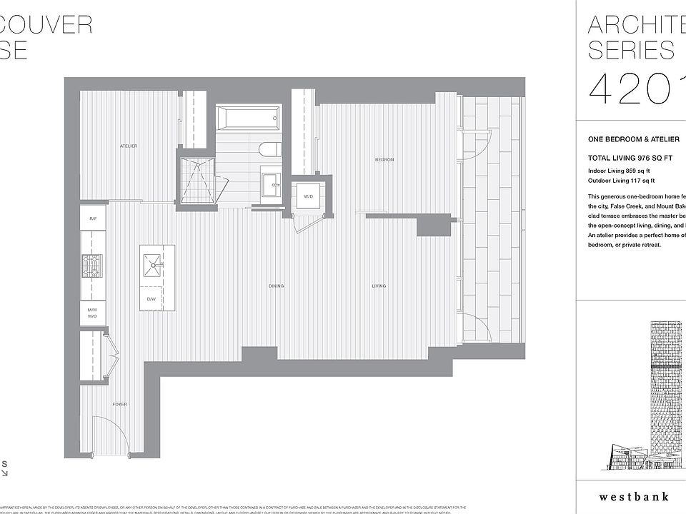 PRICED TO SELL! Best Price per square foot in the building. Vancouver House by world renowned starchitect Bjarke Ingles, developed by award winning westbank corp. is an architectural marvel of our downtown skyline. 4281 is a 1 Bedroom and Den suite with 859 SF of interior space and an additional 117 SF of outdoor space looking over False Creek, Yaletown and beyond. Interior finishing has Italian Boffi kitchen paired with Miele appliances, 4 piece bathroom with separate glass shower and tub with beautiful light oak hardwood flooring throughout . Extensive and luxurious amenities including 24 hours concierge service, 10,000 SF fitness center, an outdoor pool and more. contact us today to schedule a private showing.