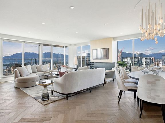 ONE OF A KIND, completely redesigned with over $600K of upgrades by award winning Enviable Designs, this IMPECCABLE Estate Home bridges UNPARALLELED Ocean, City & Mountain views with sophisticated & flawless interiors for today’s city homeowner. This 3 BED+DEN residence offers over 2145 sf of thoughtful living with inviting diningrm & custom banquette seating, larger functional kitchen island for casual dining, extended cabinets with upgraded backsplash. Complete home entertainment & sound system in the media room (DEN), livingrm FP, elevated bathrm vanities & finishes, extensive millwork, enhanced lighting & luxurious bedrm additions. Experience world-class amenities inc 24 hr concierge, 25m outdr pool & 10,000 sf fitness at HOUSE CONCEPTS. 2 parking, private WINE CELLAR & storage locker.