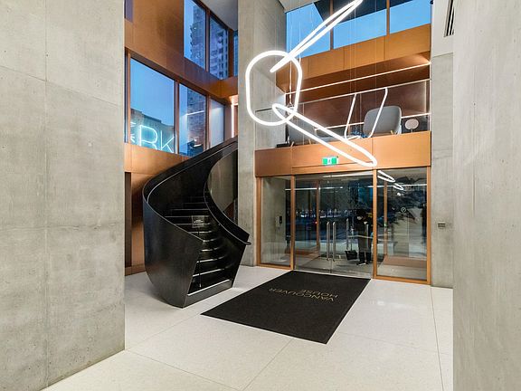 Live in the city's most iconic building- Vancouver House. This oversized 724 sq.ft. 1 BDRM feels like hotel living every day. Featuring a Boffi sleek kitchen with Miele appliances, this unit offers style and functionality. The den is ideal for a home office and the two large patio's overlooking the tranquil courtyard are perfect for entertaining and gardening. Included is AC, 24hr concierge, and access to the pool and amazing gym. Located near the waterfront paths, beaches and some of the best restaurants, this perfect pied-a-terre or full time residence in one of the most desirable spots.