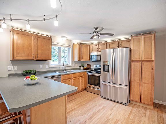 Welcome to this charming Colonial featuring 3 bedrooms, 3 bathrooms, and 1,872 sq.ft. of living space, sitting on a generous .70-acre wooded lot. Enter into the front door to the right you find the dining room which flows into the open-concept kitchen with stainless appliances and a peninsula island. The nicely sized living room has a pellet stove for those chilly NH evenings. Upstairs the primary has an en-suite and walk-in closet. 2 more bedrooms and a full bath complete the second floor. This well-loved home offers the best of both worlds, providing the feel of country living while being just minutes away from downtown Manchester and less than an hour from Boston. For outdoor enthusiasts, Lake Massabesic is a stone's throw away, offering a ton of 4 season recreational activities. Several recent updates include a newer furnace, roof, three beautifully renovated bathrooms, refinished hardwood flooring throughout, and fresh paint on the first level. The basement features radiant heat and offers the potential for additional living space. The back deck is a perfect spot to enjoy the surrounding natural beauty, where frequent visits from deer, turkeys, and bunnies add to the charm. Convenience is key, close to major highways, airports, mountains, and beaches. The property is served by public water, with city sewer hookups available on the street. Don't miss out on this wonderful opportunity; showings begin on September 30th at the Open House or schedule your private showing.
