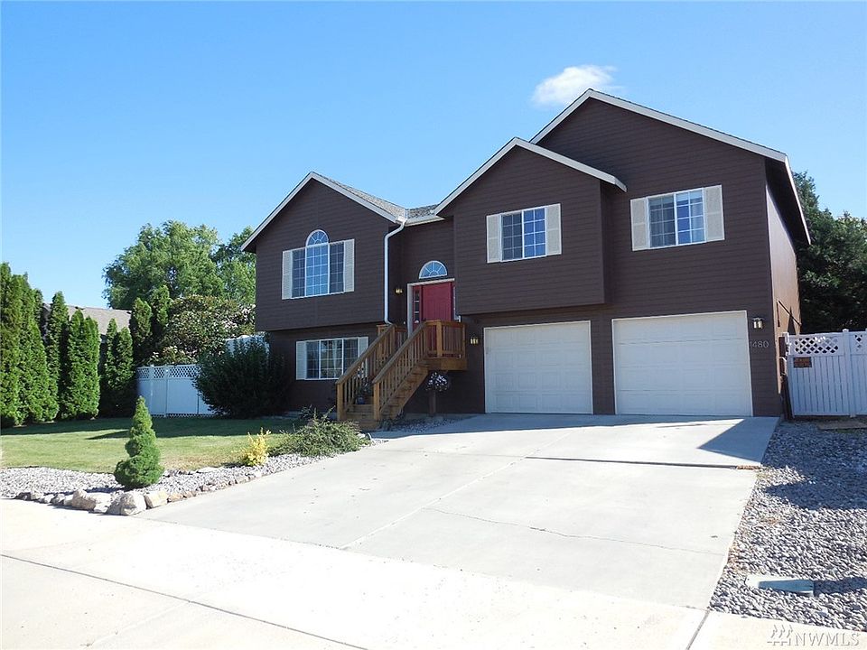 Location & perks galore! Close to hospital; 4 BR: 2 Master Suites (lower level could be family / rec room); 3 full baths in the home. Updated kitchen w/ granite countertops, new backsplash, breakfast bar; all 3 year old stainless appliances included; beautiful new "Invincible" vinyl plank flooring. Deck off dining room views raised bed gardens, firepit, 10' x 12' shed, white vinyl fencing/gate to access ditch. RV parking w/ hookup, 2 yr Marquis 4 person hot tub included. Insulated garage doors.