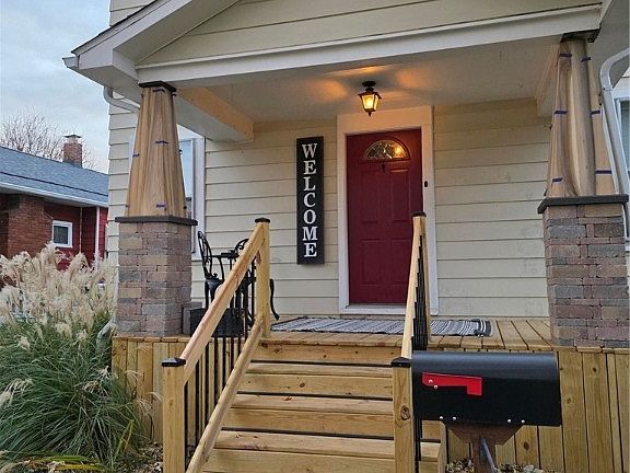 New front porchCharming built-in window seatOriginal wood flooringAntique door accentAbundant natural lightTile flooringNewer windows