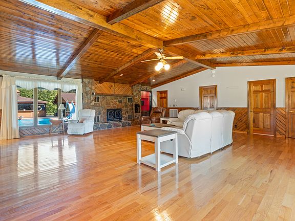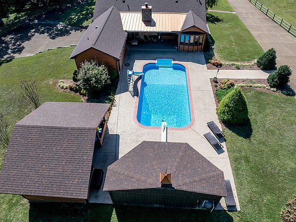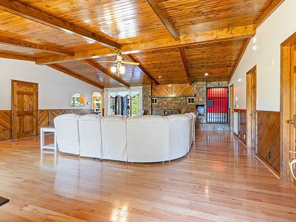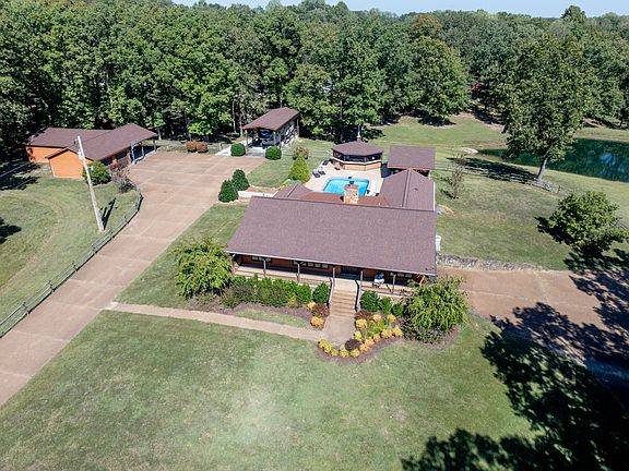 This jaw-dropping 4-bedroom, 4.5-bath estate is decked out with all the glitz and glam you could dream of only 2 minutes to I-40. Revel in exquisite, original hardwood floors, snazzy custom cabinets, a gas fireplace, top-of-the-line Thermador appliances, custom crank windows and a charming covered front porch. But wait, there's more! The back patio boasts an in-ground pool, a pavilion, and a wet bar with an outdoor kitchen. Plus, there's a 2-car garage, a 2-car carport, a colossal heated shop, and fencing ready for horses or cows, complete with an entry cattle gap and a motor home shed. All this, with a picturesque view of a shimmering lake!