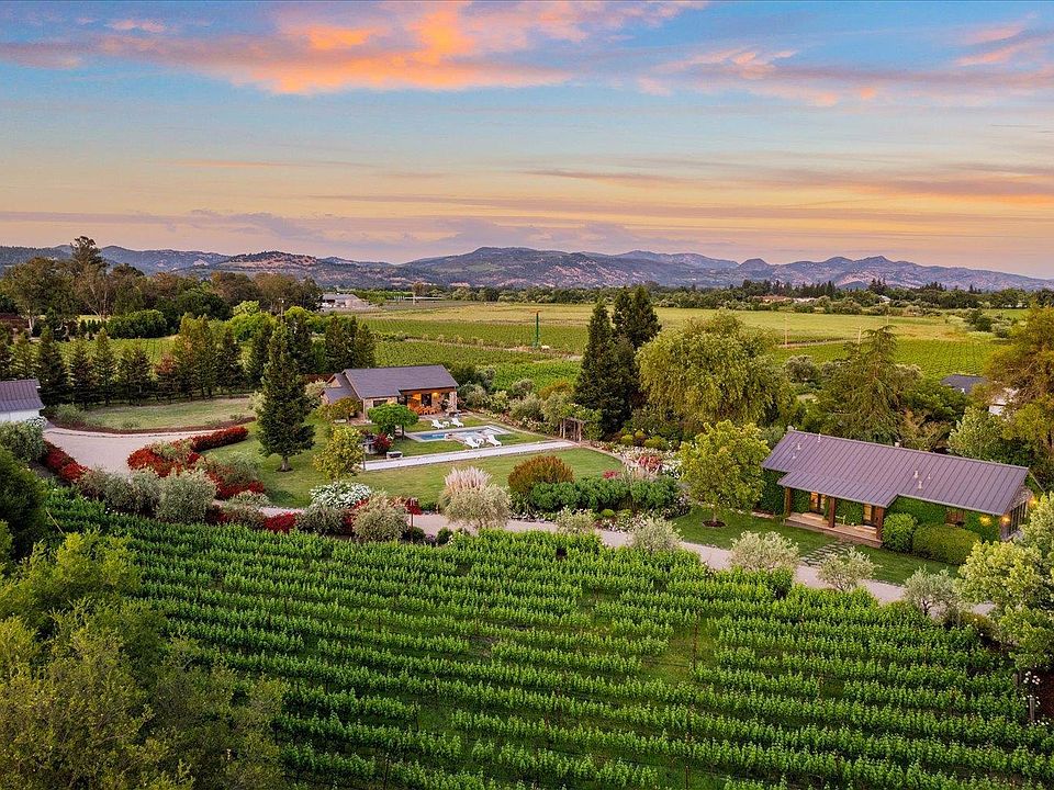 This 5-acre estate is nestled in the heart of Napa Valley, it offers lush mature gardens with panoramic vineyard and mountain views that epitomize the serene beauty of wine country living. The main residence features 2 bedrooms and 2 bathrooms, designed for comfort and style. Enjoy seamless indoor-outdoor living with direct access to a luxurious outdoor space, complete with a pool, spa, bocce ball court, and a spacious pergolaideal for gatherings and entertaining. For guests, the cottage includes two ensuite bedrooms, providing a private and comfortable retreat. A unique barn serves currently as both a gym and a wine cellar. The property's vineyard has approximately 1000 vines, sauvignon blanc and merlot varietals expertly maintained by a vineyard manager who also cares for the olive trees. With three acres yet to be developed, there is abundant potential for expansion. Whether you envision constructing an expansive new home (architectural plans available) and expanding the vineyard or simply enjoying the existing landscape, this property offers limitless possibilities. Embrace the opportunity to own this beautiful property in this extraordinary setting in Napa Valley.