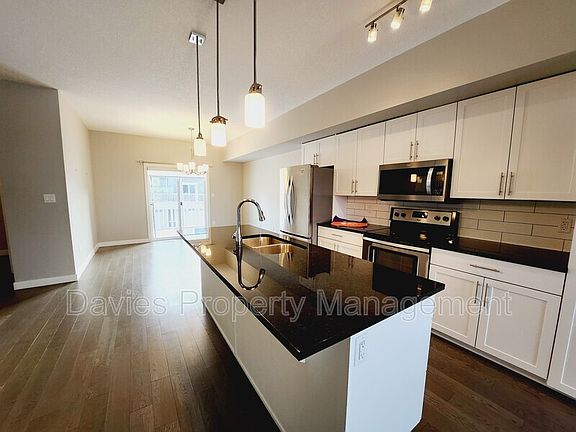 Beautiful townhouse with 3 bedrooms, 2.5 Baths, finished basement and double attached garage. This townhome comes with a functional open concept main floor plan. The home features a modern kitchen with an island, quartz countertops, matching stainless steel appliances, laminate floor, access to a private deck, spacious living room and dining area with access to to a private balcony. A half bath on the main floor completes this level. On the upper level there are 3 bedrooms and a main 4 piece bath. The primary bedroom comes with a walk-in closet and a full ensuite bath, plus a balcony. The washer and dryer is also located on the top floor which makes it easy to do all the laundry. The basement is finished with a spacious flex room that can be used as an home office, play area, or a hobby room. There are plenty of space for additional storage. The double attached garage makes this home complete and ready for you to move-in and enjoy. Pet friendly subject to approval and monthly pet fees. The home is located close to schools, parks, shopping and more. Easy access to Anthony Henday.