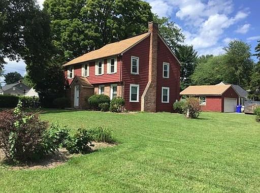 This 4 bedroom, 1.5 bathroom Stately Colonial house features 1,861 sq. ft. of living space. Entertain with ease in the formal living room with a charming fireplace. The eat-in kitchen has plenty of cabinetry, ceramic tiles, and comes fully appliance for the Buyer???s enjoyment. The 2nd level leads to 4 generously sized bedrooms with hardwood floor and plenty of closet space. The full basement offers additional rooms and fireplace for the future rec room that awaits your finishing touches. The exterior enclosed rear porch and deck overlooks a private large backyard with a two car garage. This property is heated by gas! Easy to show!