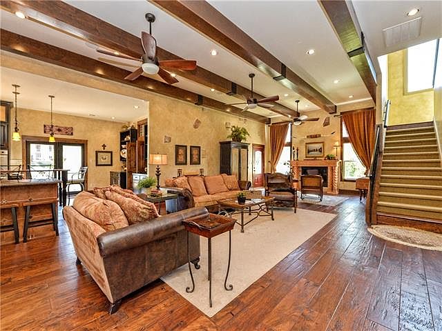 Click on address take 3D walking video tour Gorgeous 3 acre estate only 20 minutes to downtown Austin. Improvements underway for quicker commute. Entire back border of property sits on beautiful Cub Creek which runs 9 months out of the year. Five stall barn with tack room is ready for horses. Enjoy outdoors in winter on wrap around porch w/ fireplace and summer in pool, spa and screened cabana. Mosquito system. Second family room with kitchenette for kids. Massive beams. 3 fireplaces. Chicken coop.