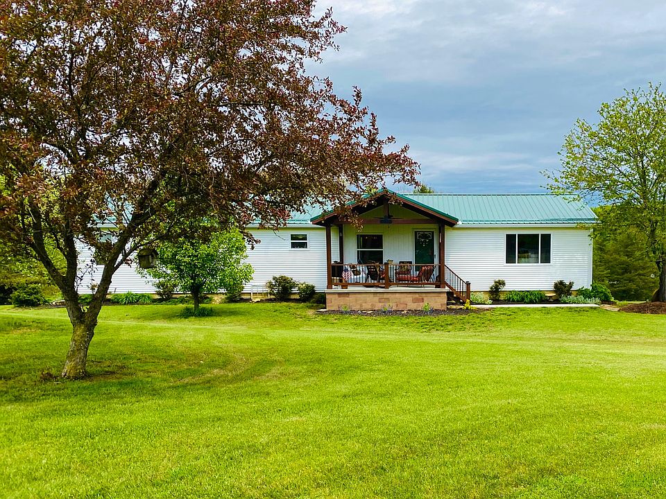 Peaceful, picture perfect property, located on dead end road that is within walking distance to Wayne National Forest. Great for hiking and hunting. Beautiful updated home with new metal roof, furnace, 2 water heaters and windows. Open concept with Master suite, 2 more bedrooms on main floor and 2 finished bedrooms with bathroom in basement. Great area in basement for rec room. 30X48 pole barn 3 bay garage. Private well with septic, but public water available to tap. Spectacular views from this hilltop location.