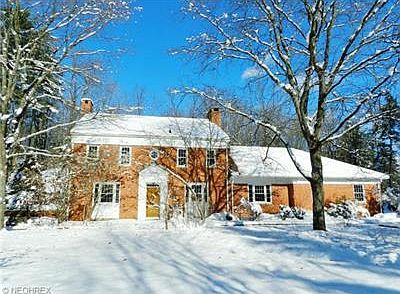 Renovation opportunity with enormous potential! Customize this fantastic brick home w/ large rooms and many "extras" -- 4 fireplaces, walk-out lower level, screen porch and greenhouse. The setting is spectacular - 5 wooded acres in Hunting Valley, with home set well back from the road, w/ mature trees for privacy. The large formal LR with raised brick fireplace has a gorgeous view. The spacious eat-in kitchen connects to the DR/ hearth rm, with 2nd large brick fireplace. The wall between these two rms was added by the current owner & might potentially be removed to create an expansive modern kitchen open to a great rm. The adjoining FR has a 3rd brick fireplace, built in book cases & sliders to a deck. There's also a mud room w blt-ins and powder room on first. Upstairs are 4 total bedrooms and 2 baths. The large master bath has been updated. The lower level has a large finished room with the 4th fireplace and a door to the back yard. The sought-after walk-out feature adds to the potential. This is an area with many nearby high-end homes, adding to the renovation appeal. Home is well and septic with city water at the street. Vast potential to remodel current spaces or reconfigure to suit your preferences.