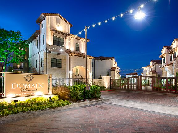We are now accepting in-person and self-guided tours via scheduled appointments only. Our virtual tours are also available. Please schedule yours today. Domain Memorial, a sophisticated Houston townhome address, features remarkable one, two and three bedroom floor plans. This luxury property has thoughtful architectural elements and unparalleled amenities. It features private garages and elegant interior appointments with the opportunity to select Modern or Mediterranean finish inspirations. Located in the heart of the Houston Energy Corridor - home to more than 300 companies including the headquarters of BP America, Citgo, and Conoco Phillips - Domain Memorial is surrounded by Houston's best shopping, entertainment, and restaurants right outside your door, including City Centre. Explore nearby Terry Hershey Park and Bear Creek Park, two expansive green spaces that boast a network of walking and dirt trails with lush natural beauty and over 50 miles of trails. Choose Domain Memorial, and enjoy a luxury apartment home handsomely brought together in one singular place.