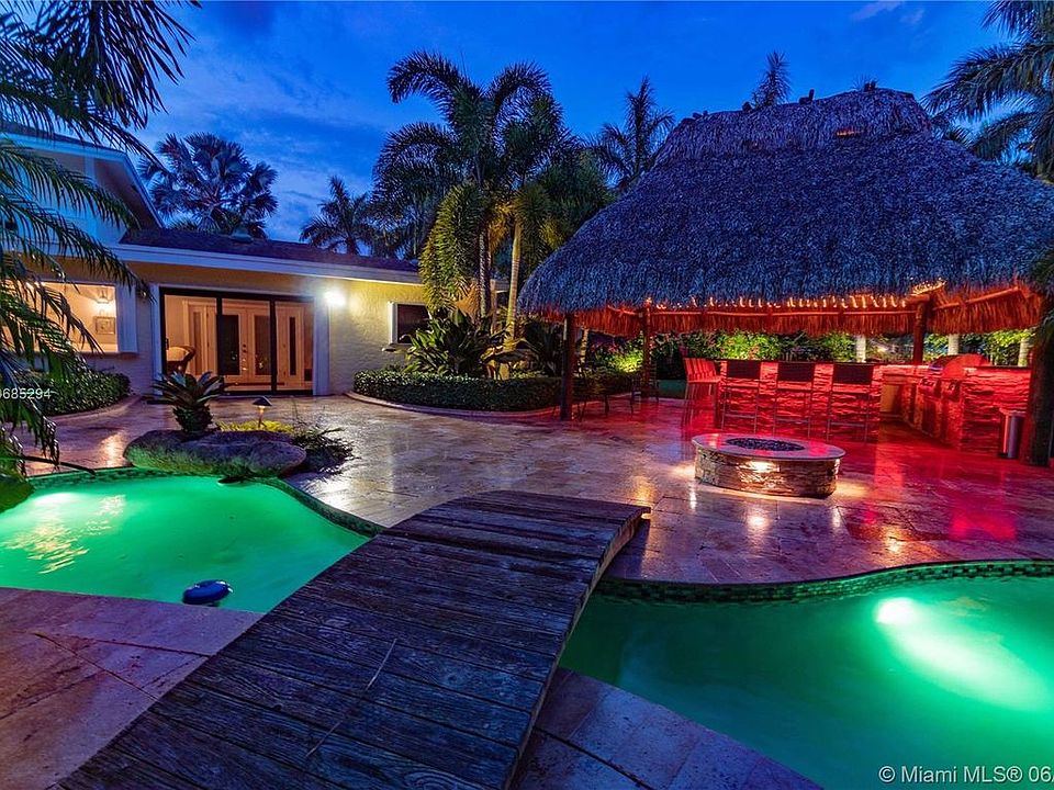 Breathtakingly beautiful corner property on over half acre of lush landscaping! This extraordinary 4 bed, 2.5 bath home with over $200K in upgrades is situated in the highly sought-after community of Stonewood, just a short drive South of Kendall. Impeccably kept throughout with a functional and spacious layout. Eat-in kitchen with cooking island and wood cabinetry. Bonus 5th room/office, formal living and dining, newer roof and renovated master bath upstairs. Enjoy the resort-like backyard oasis, professionally designed with custom outdoor kitchen, tiki hut, travertine deck and fire pit. Ornamental free form pool with water fall and lighting effects. Fully equipped detached garage with 1,200 sq ft under A.C. ideal for the car enthusiast, or easily convert to guest house for rental income.