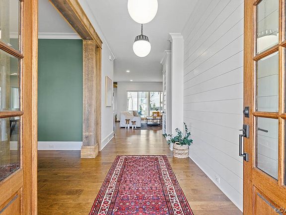 - Description: Wood beam archway, hardwood floors