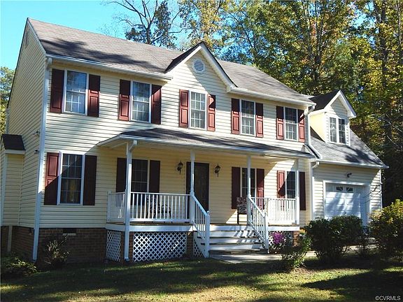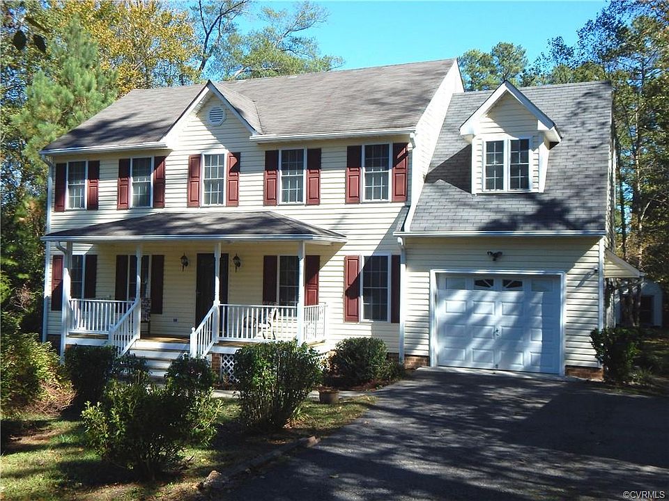Classic Colonial on private 1.58 ACRE LOT! VINYL SIDING & ENERGY-EFFICIENT THERMAL WINDOWS! You'll love the many amenities and features, including COUNTRY FRONT PORCH, COVERED BACK DECK, LARGE GARAGE & VERSATILE FLOOR PLAN! There is a pretty dining room and a large and comfortable great room with fireplace. Enjoy peaceful wooded views from the eat-in kitchen with BAY WINDOW. Lots of cabinet and counter space, too. There is LAMINATE FLOORING in the foyer, dining room and kitchen. The large master suite is very spacious and has a luxury bath complete with SOAKING TUB. There are a total of four comfortable bedrooms. There is even a convenient pull-down attic for added storage options. Other features include 10 X 20 DETACHED SHED with loft for extra storage space, GUTTER GUARDS to keep out the leaves and PAVED DRIVEWAY. Wonderful location in Chester, VERY CLOSE TO FT. LEE and a variety of shopping & dining options. Easy access to major highways and less than 30 minutes to Downtown RVA!