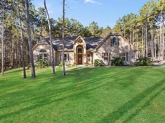 Custom home in Emerald Lakes! Gated community with 460 acres of untouched nature! Spring fed 30 acre lake stocked with bass! Set among mature trees on a 1.21 acre wooded lot, the lovely brick exterior has a stone accented entrance and oversized two car garage. Open floor plan with vaulted ceilings, beautiful painted concrete flooring, extensive crown moulding and graceful architecture. Large den with wall of windows and gas log fireplace with switch activation. Island kitchen with large walk in pantry and granite counters features built in stainless appliances with 5 burner gas cooktop and gorgeous custom cabinetry with soft close drawers and undermount lighting. Refrigerator included, washer/dryer/mounted televisions negotiable. Luxurious Owners suite with private bath features an oversized walk in shower, corner garden tub and separate vanities. Large upstairs game room, full bath and oversized bedroom. Neighborhood clubhouse, pool, recreation and boat/RV storage. Call today!