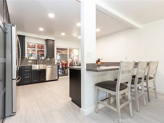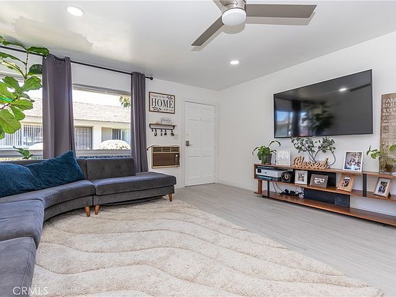 Immaculate, superbly maintained Sycamore Gardens condo! You will be captivated the moment you enter this single level, 3 BR, 2 Bath home that has been totally updated to perfection. Light & bright, open floorplan w/fabulous PORCELAIN flooring & PLASTERED walls throughout. The spacious LR features a lighted ceiling fan & recessed lighting. Adjacent Dining Area is accented by an attractive chandelier & 3-stool Breakfast Bar opening to the Kitchen. The chef of the home will love the stylish, newly updated Kitchen complete w/stainless steel microwave, dishwasher & quartz countertops w/stunning black cabinetry. Primary BR w/a walk-in closet with shelving & drawers, also offers a lighted ceiling fan & a private 3/4 bath w/white cabinetry accented by black quartz countertop & porcelain shower. The 2 nicely sized secondary BRs both have closet organizers, as well as lighted ceiling fans & recessed lighting. Main 3/4 bath features double sinks and gleaming porcelain shower area. Two hallway closets for storage + pull-down attic access. Outdoor covered laundry area (approved by HOA) with ample storage + a relaxing outdoor brick accented patio. Wall AC unit in LR/DR area. One assigned carport with locked storage cabinet. Association Pool, Hot Tub & Gazebo in greenbelt area. Assoc. also covers water, trash, roof maintenance & landscaping. HOA replaced the roof only 2 years ago and Sellers recently re-piped the home. Move-in ready!!