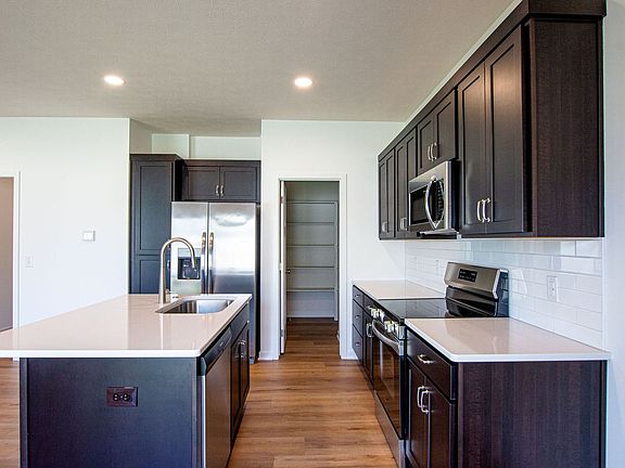 Recently built in 2024 and ready for its first renters, this big beautiful 4 bedroom, 2 story home is sleek, modern and features many gorgeous updates! Stone fire place, huge walk in pantry in kitchen, master bath with dual sinks, master walk in closet, laundry room located on second floor for your convenience, AND finished basement with full bath and 4th bedroom!